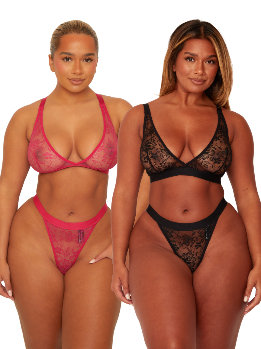 Millie-Mae Twin Pack Bralette & Thong set is simply divine. The lace cups offer comfort for all-day wear, whilst the adjustable straps provide super support...Perfectly paired with the matching thong!