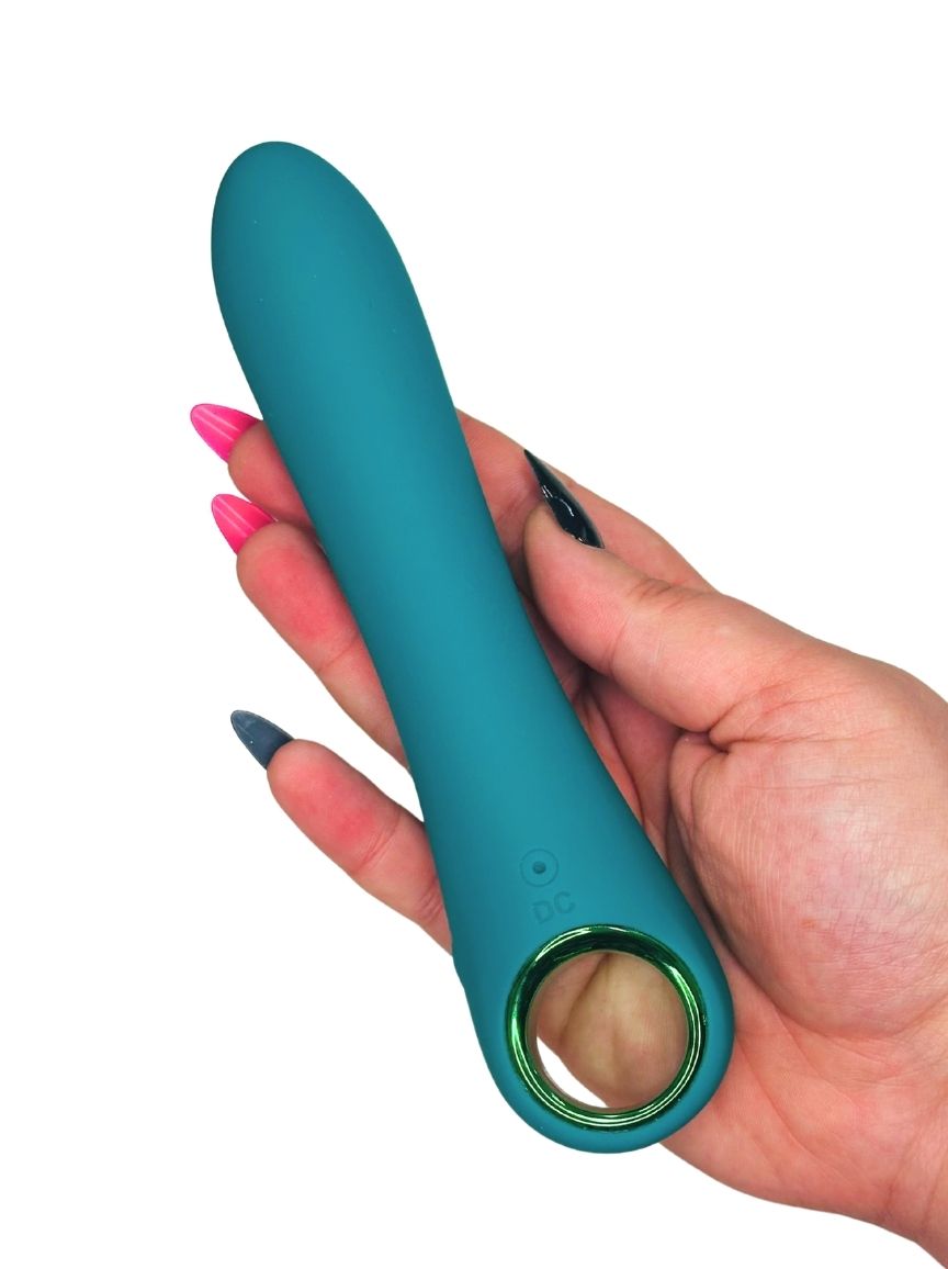 With its smooth straight silhouette, soft-touch silicone, and emerald green metallic detailing, this beauty is as elegant as it is powerful.